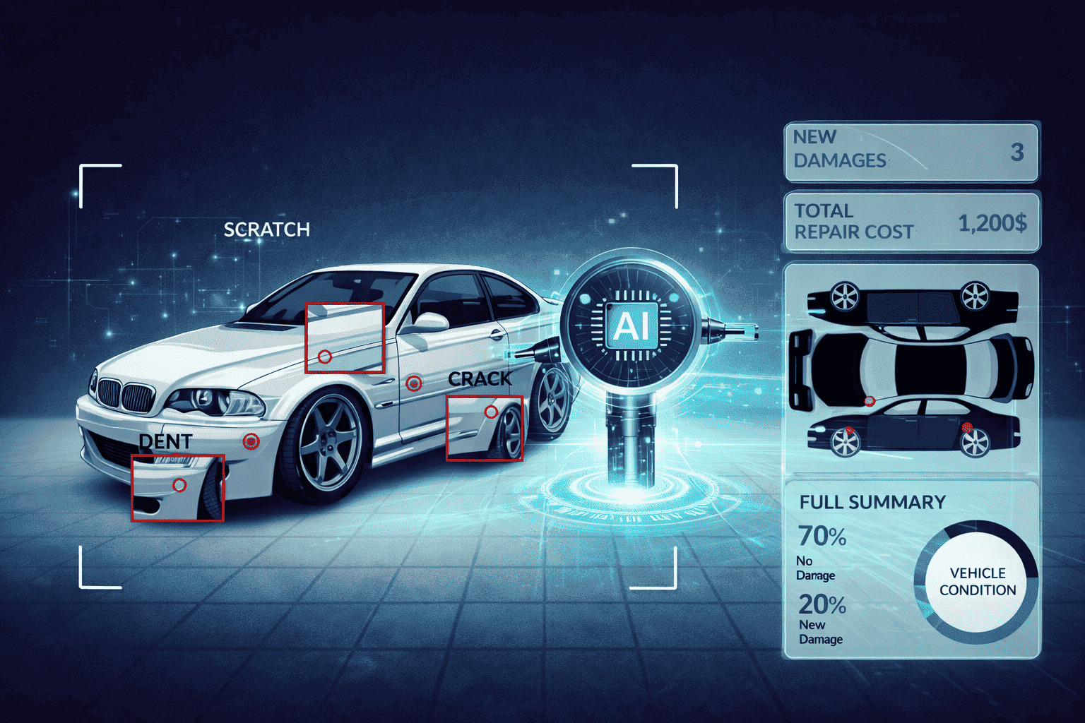 AI powered damage detection automates vehicle inspections using computer vision and deep learning technology.